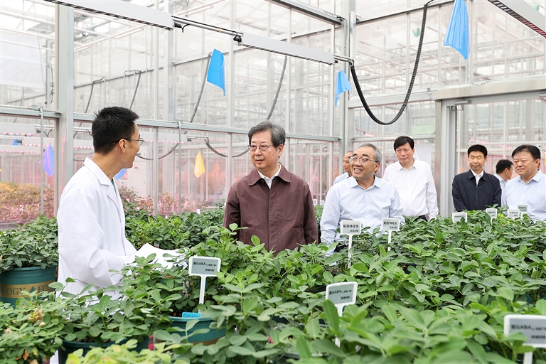 中国农科院中原研究中心是中国农科院与河南省联合布局的区域创新中心。楼阳生察看果蔬园艺作物种质创新与利用全国重点实验室、科技成果转化交易中心、中原农谷数智大脑运行情况。他指出,要加大种质资源发掘、收集、保护力度,应收尽收、应保尽保,为实现种业科技自立自强奠定坚实基础。要用好我省海量数据资源和丰富应用场景,在农业领域推出一批人工智能垂直大模型,以数字技术赋能农业全域转型发展。在中原农谷科技孵化中心,楼阳生了解省畜禽遗传资源基因库、国家家养动物种质资源库河南分库等建设情况,强调要建强公共研发平台,优化机制、完善服务,健全体系、形成生态,实现科技资源开放共享、高效利用。楼阳生来到平原实验室、神农种业实验室,察看实验室建设运行情况,指出要聚力攻克关键核心技术,加快产出一流成果,不断提高基础研究能力、原始创新能力、服务发展能力。在国家生物育种产业创新中心,楼阳生强调,要深化体制机制创新,促进投入主体多元化、管理制度现代化、运行机制市场化、用人机制灵活化,充分激发新型研发机构创新创造活力。